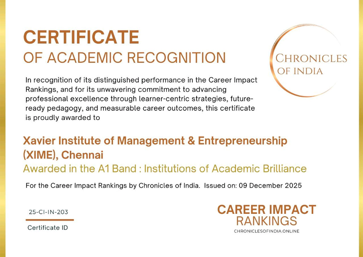 This recognition highlights XIME Chennai’s emphasis